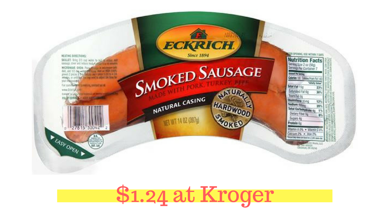 Home > Kroger Ad > Eckrich Coupon | Smoked Sausage $1.24 at Kroger