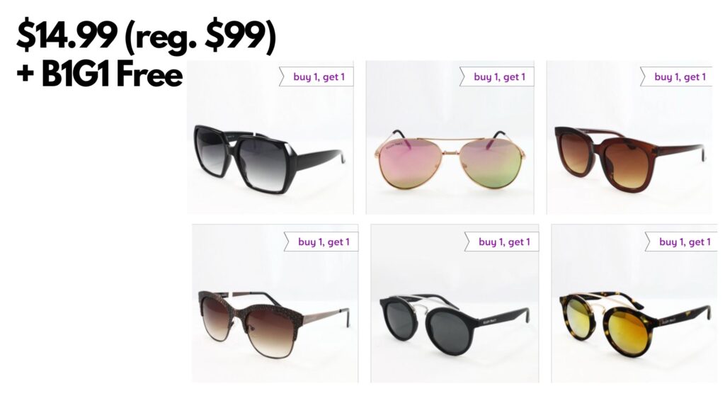 Get fun stylish sunglasses at a great price this weekend! While supplies last, get Ellen Tracy sunglasses on sale for $14.99 (regularly $99) plus when you get 2+ pair you’ll get them B1G1 free at checkout!