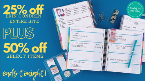Today only, get 25% off everything at the Erin Condren New Years Sale. Plus, get 50% off select items! Find trendy planners, accessories, organizers, and more!