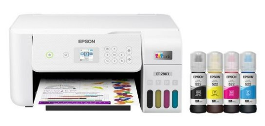 EcoTank ET-2803 Inkjet Printer, Copier, Scanner – White – $199.99 (reg. $280)