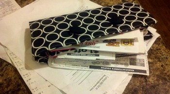 Deb sent me a couple of wallets to try out for myself. A regular wallet and an envelope wallet. There was actually a delay in shipping so in the end I ended up with two. I put both of them to use though. One for our envelope system and one for coupons. I have explained in the past that I only cut coupons when I need them so this holds all the coupons that are ready for each store will visit that week. They are in separate pockets by store.