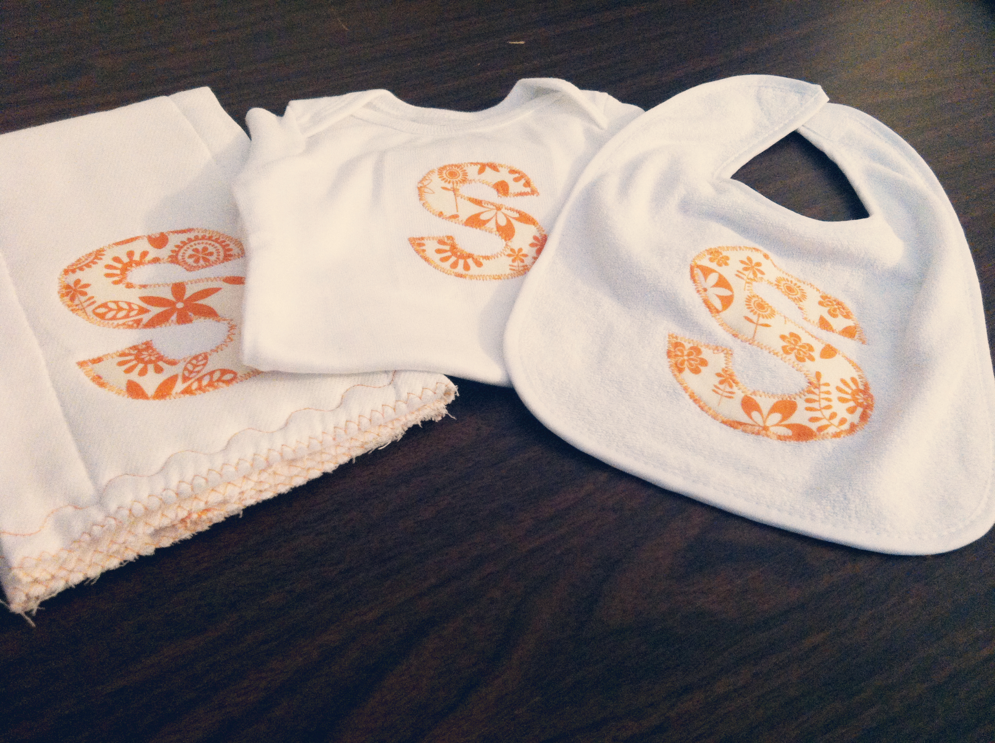 Chané was so sweet and sent us some sweet monogrammed items for our new baby girl.  I absolutely love the matching bib, onesie and burp cloth – they’re very well made with great attention to detail.  On top of that, they’re really cute!
