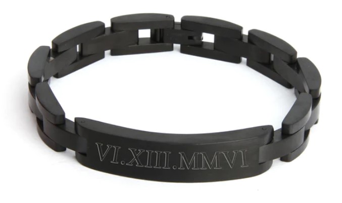 Men’s Custom Roman Numeral Black Plate Bracelet – $69.30 (reg. $99)