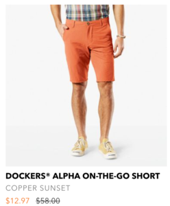Through Sunday night get an extra 50% off Dockers.com sale items! Items are already marked down as low as $13 for shorts and $18 for pants, so after the coupon you’ll get Dockers shorts for $6.50 or pants for $9!!!