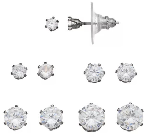 5-Pair Cubic Zirconia Stud Earring Set $.90 (reg. $18)