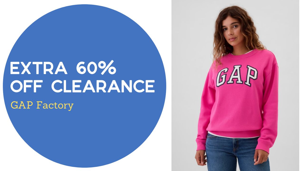 Right now, speed over to GAP Factory where you can get a whopping extra 60% off clearance items! This is a clothing stock up deal!