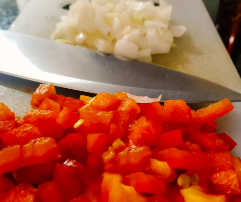 - Chicken—cubed and cooked (could be grilled or pan sautéed)