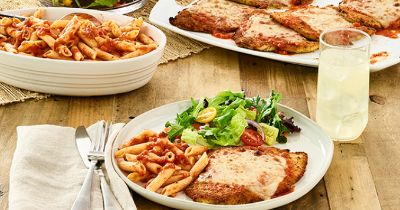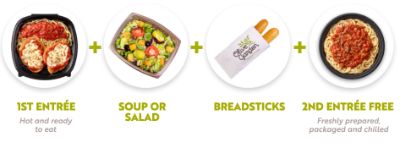 While it’s not quite a family meal, Olive Garden is offering their much loved BOGO Take Out Meals. Grab one entree and get salad, breadsticks and a second entree for later. Meals are $12.99 for everything.
