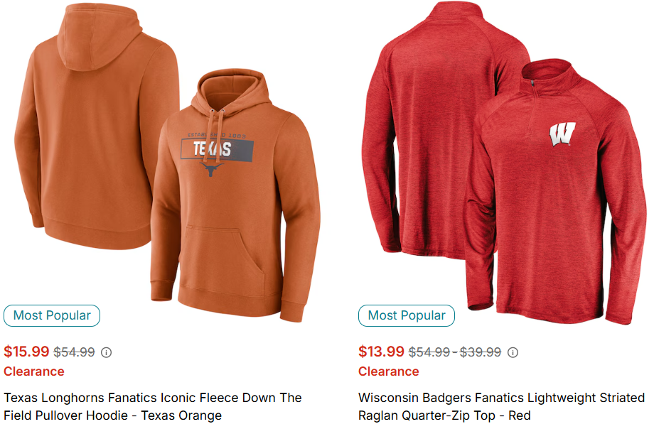 Home > Clearance Deals > Fanatics Deal | NCAA Pullovers as Low as $12.99