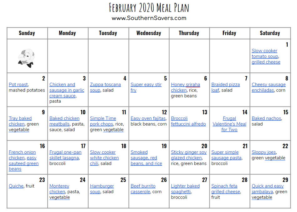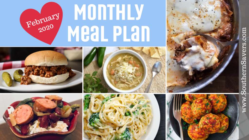 Some days I’m not sure if it’s winter or summer here in South Carolina, but the calendar tells me that February is right around the corner, which means it’s time for a new monthly meal plan. We’re in a busy season in our home, so I am sticking with classic family favorites that I’ve made time and time again. I’ve included tons of Southern Savers recipes this month as well as recipes from other recipe blogs I love.
