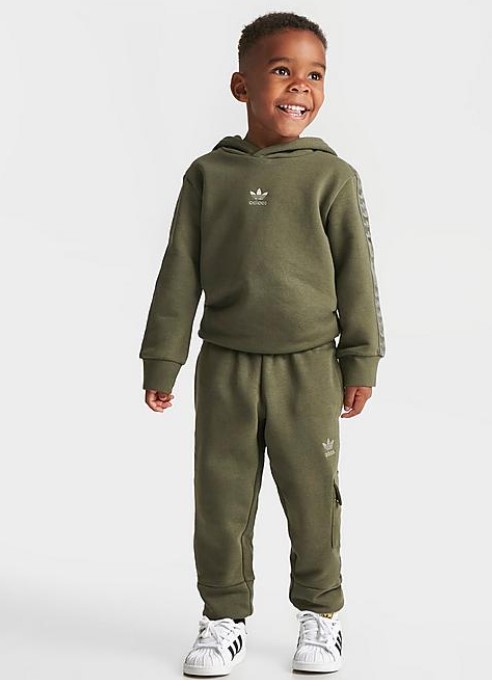LITTLE BOYS’ ADIDAS ORIGINALS TAPE HOODIE AND CARGO JOGGER PANTS SET – $20 (reg. $55)