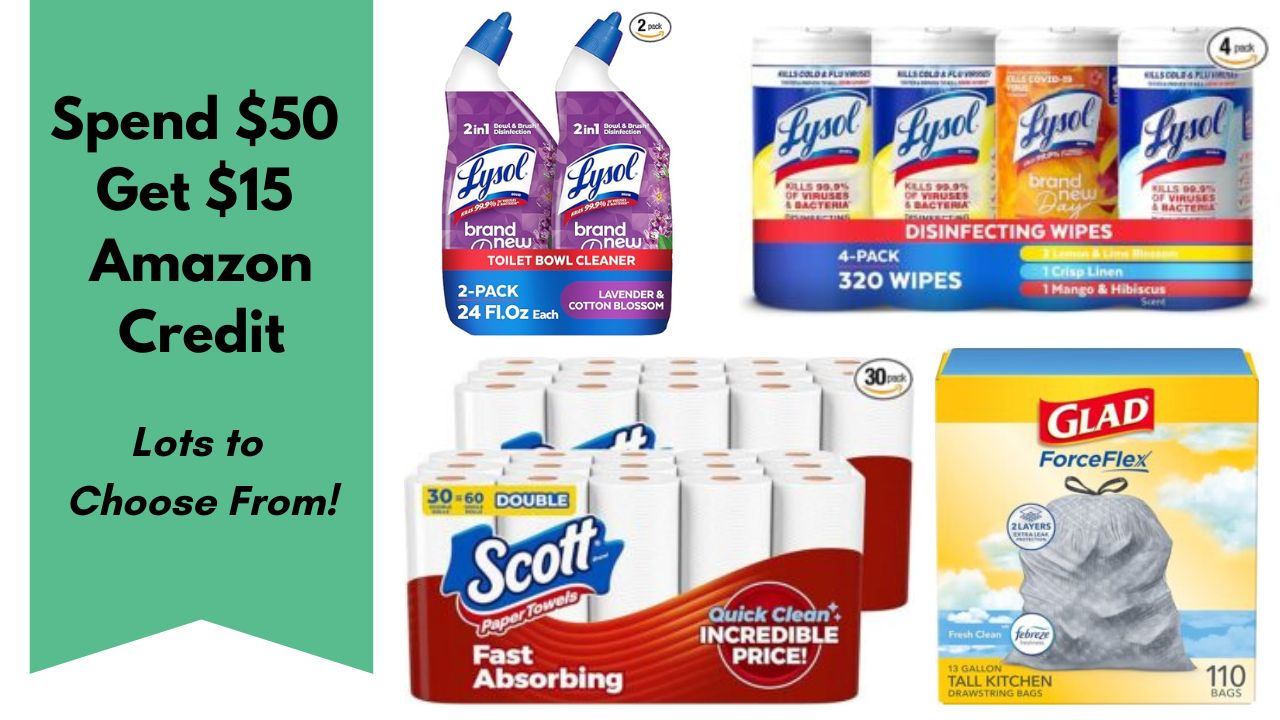 Home > Amazon > FREE $15 Amazon Credit w/ $50 Select Items – Lots to Choose From!