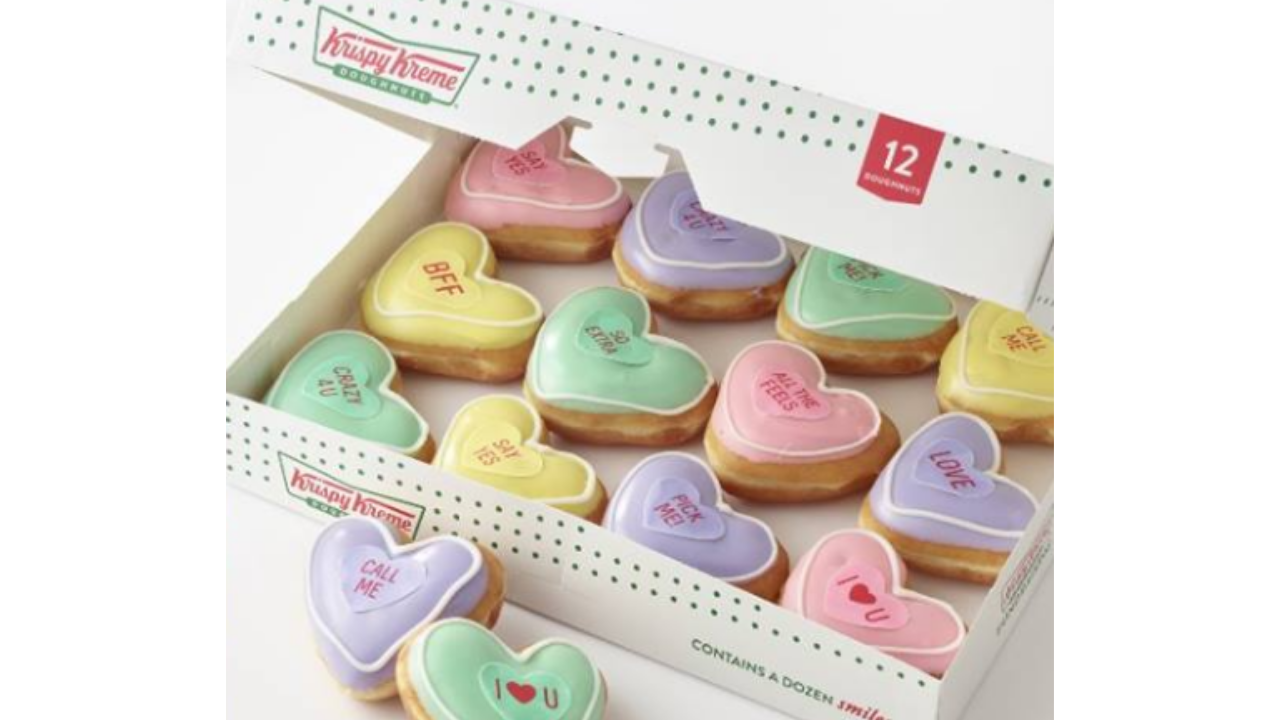 Today only, Krispy Kreme Rewards members can get a Free Conversation Heart Doughnut with any purchase! Choose from Cake Batter, Strawberries and Kreme, Rasberry and Chocolate Kreme.