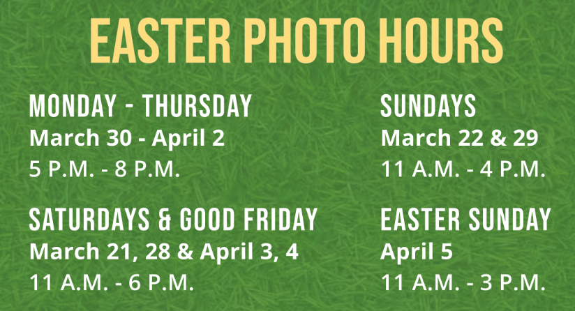 Mark your calendar for March 21st, the opening day for Cabela’s or Bass Pro Shops Easter photo opportunity. Reservations open March 14th.