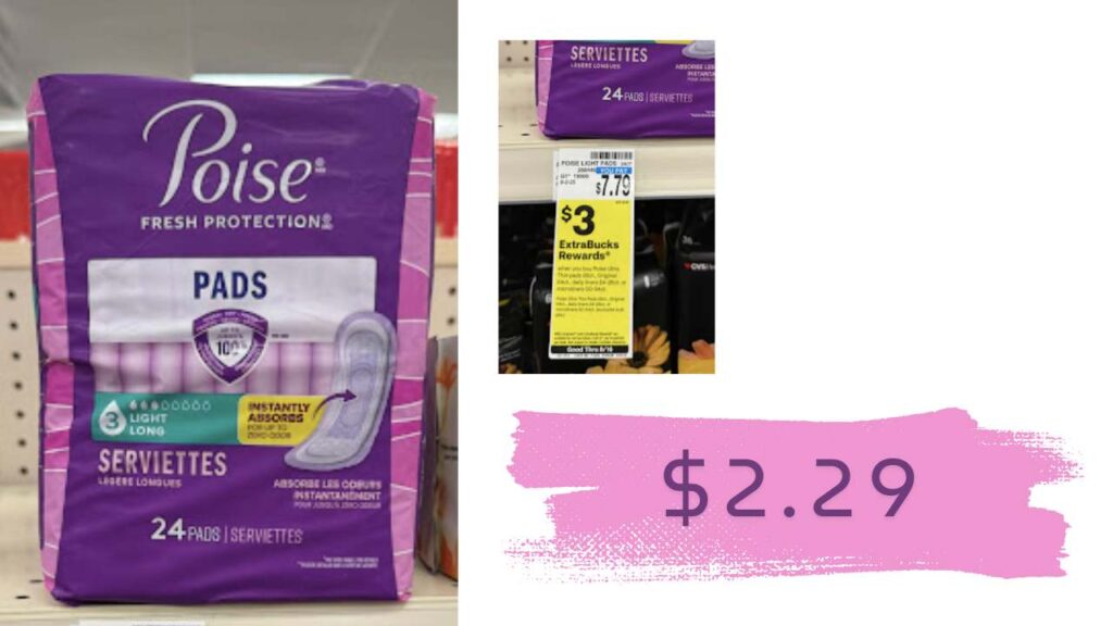 Get an easy deal on Poise products at CVS this week! Grab one pack of Poise Pads for only $2.29 after ExtraCare Bucks and an eCoupon.