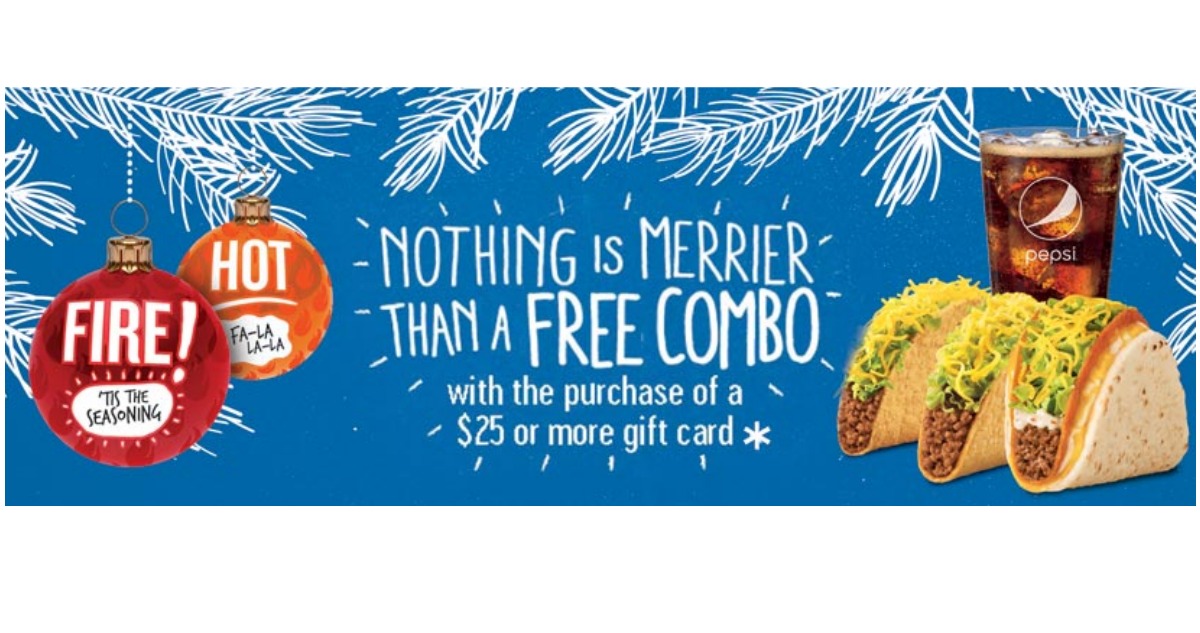 For a limited time, Taco Bell is offering a free combo meal when you buy a $25 Taco Bell gift card in-store.