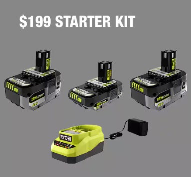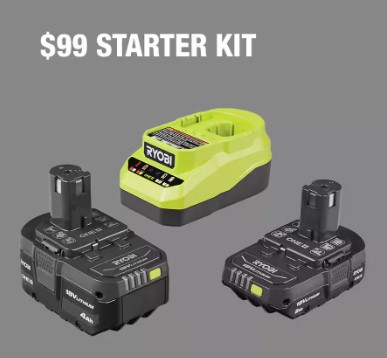 RYOBI ONE+ 18V Lithium-Ion Starter Kit – $99