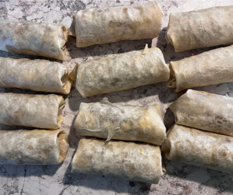 - Wrap each tortilla into a burrito. Cover with plastic wrap or press 'n seal and place in freezer bag.