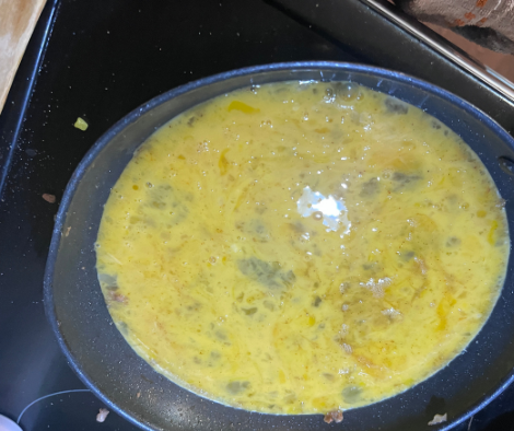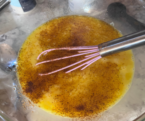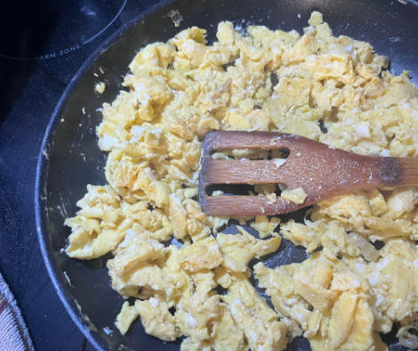 - Whisk the eggs with your seasonings and cook over low heat until just barely scrambled.