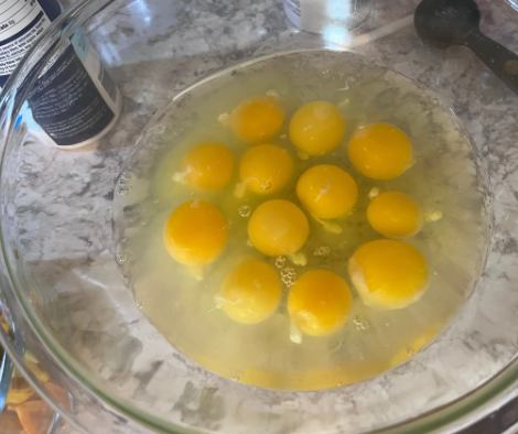 While the potatoes and sausage are cooking, work on the eggs. I used a whole dozen.