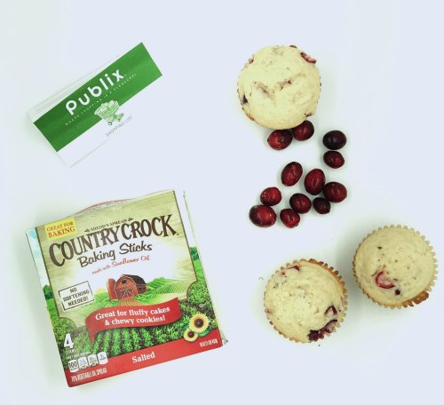 These are made using Country Crock Baking Sticks. All week I’ve shared a few of our families favorite recipes to make with Baking Sticks, and this one is by far my favorite! I will fight people for the last muffin and I’m known for sneaking extra cranberries into some just for me. Another option for traditionalist is this great Blueberry Muffin recipe from Country Crock.