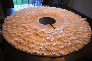 This first one takes a bit of time (a few hours), but I think it’s worth it for a beautiful ruffled tree skirt. And you don’t have to haul out your sewing machine and worry about sewing straight lines!