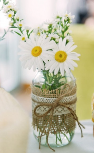 Tie lace, twine, burlap and other pretty novelties around your jars and vases to add a vintage feel.