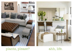 The Nester over at Nesting Place did an entire series about using plants around the house and this picture really hit home for me. Both the rooms above are beautiful, but the one on the left just feels a little stiff, and right one feels so much happier! What a difference a little fresh greenery makes.