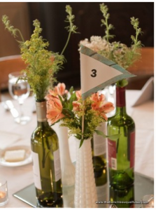 Use an empty wine bottle or ask a local restaurant if you can check their recycle bin for quick, beautiful vases.