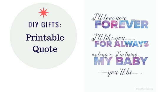 This printable quote should go in a prominent spot in the living room, just as a reminder. Print out this quote on a sheet of card stock and frame it to make a gift out of this fun quote.