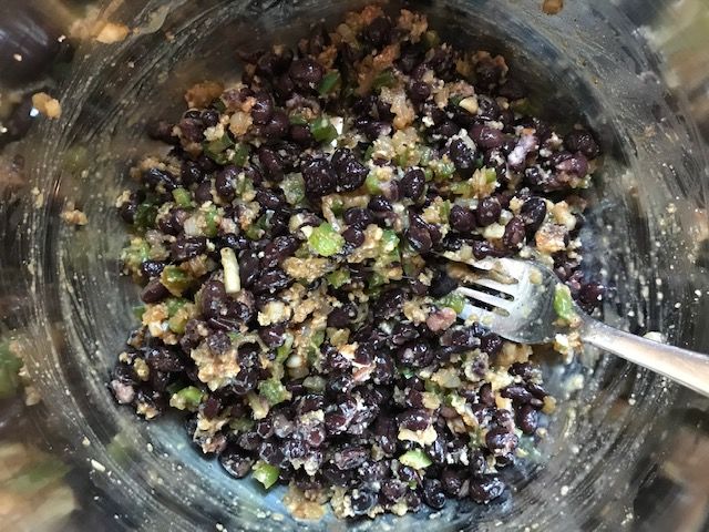 - Using a fork, mask the mixture until most of it is mashed, but there are still chunks of beans left.