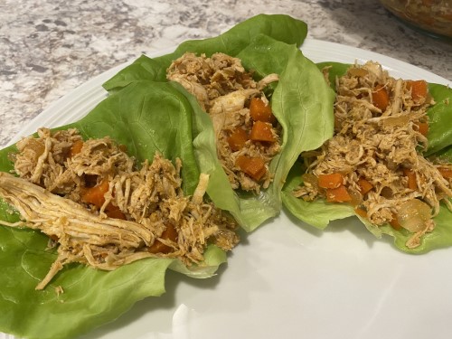 - To serve, fill the lettuce cups with the chicken mixture (and then eat it as if you were eating a soft taco!).