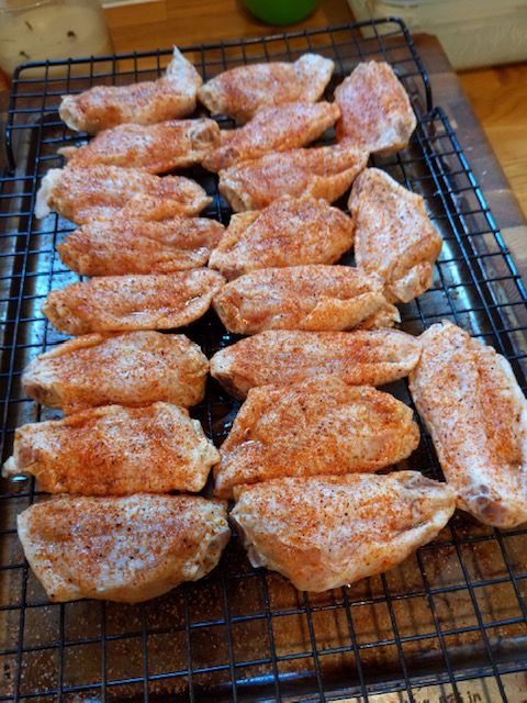 - Meanwhile, place the chicken wings in a large bowl. In a small bowl, stir together the salt, pepper, paprika, and garlic powder. Generously sprinkle the mixture over the chicken wings. Toss around until they are all evenly coated.