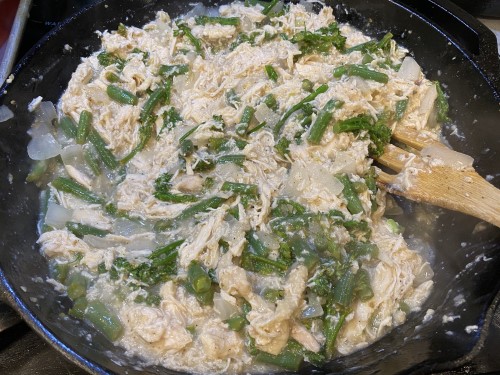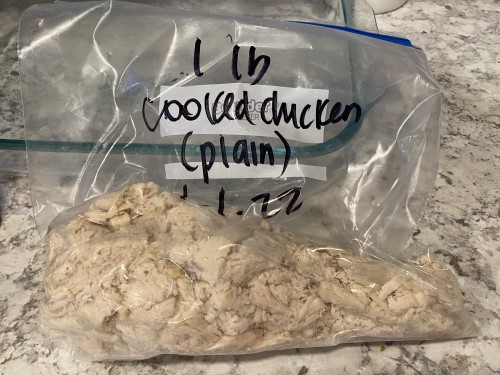 For the chicken, I pulled a bag out of the freezer that I had cooked several months before. I let it thaw a bit before adding it.