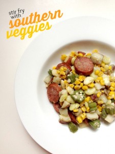 This stir fry with Southern veggies is easy and flavorful (and it uses some of my favorite vegetables)! I think it’s fun because sometimes traditional stir fries can get a little boring. And if you don’t like some of the ingredients, simply replace it with something else you do like.