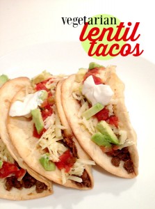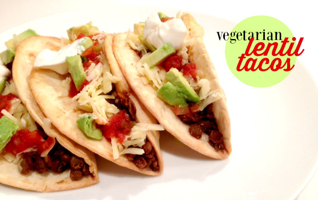 Lentils are so good for you (and are really inexpensive). They have lots of protein and fiber and are low in fat. Prepare the lentils for the tacos just like you would ground beef (simmer them with taco seasoning) and then load them onto taco shells with cheese, salsa, and all of your favorite taco toppings.