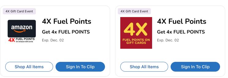 Normally these offers exclude Amazon, but for possibly the first time ever we also have a separate digital coupon that gives 4X the fuel points just for Amazon gift cards!! So make sure you load both digital coupons before grabbing gift cards.