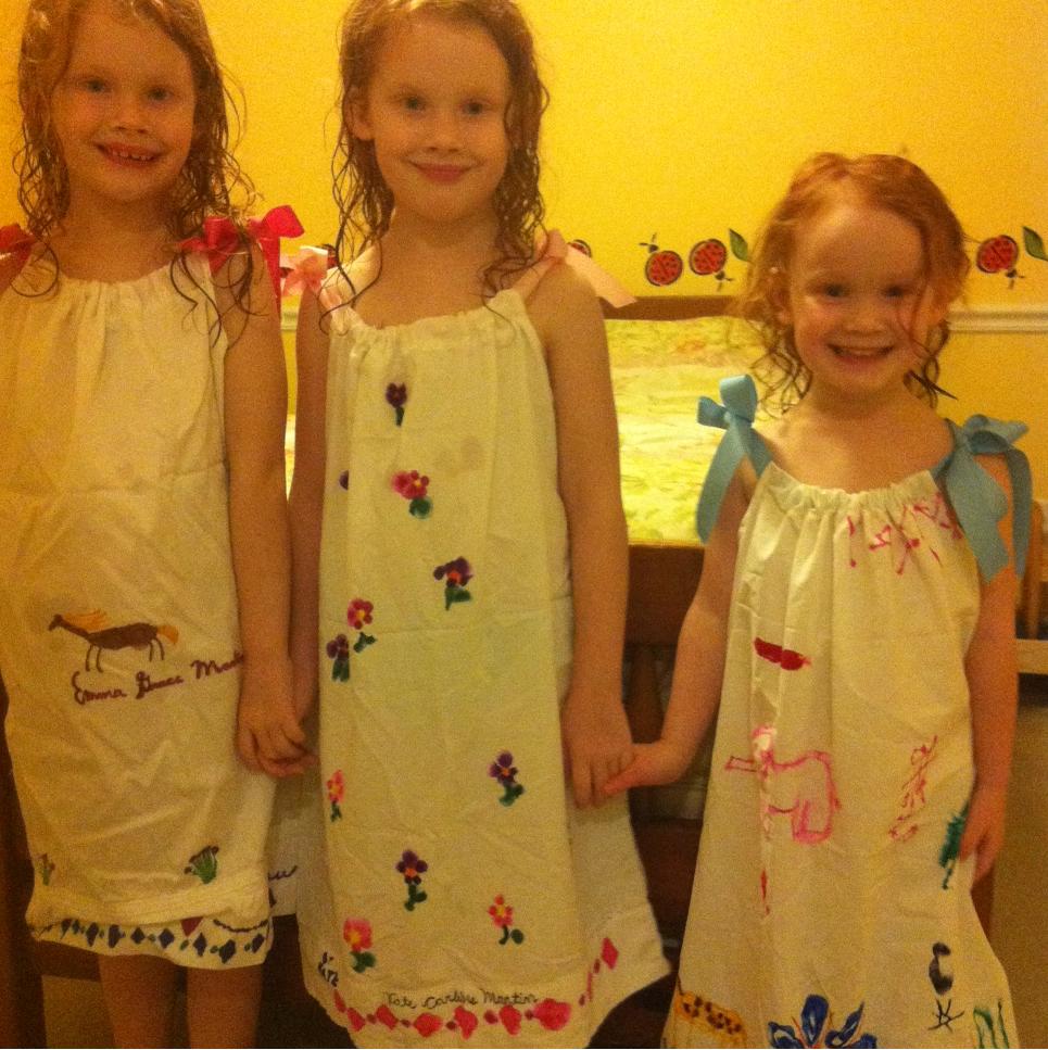 This weekend we tackled pillowcase nightgowns. It took about 2 hours but would be shorter if you do the sewing yourself. I turned it into a sewing machine lesson for my older girls so it was a little slower that way. The only thing we ended up needing was ribbon so the whole project for three gowns cost less than $5!