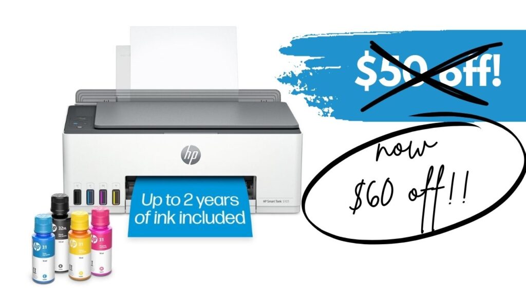 Head to Best Buy where they have further reduced the price on this HP Smart Tank 5101 Wireless All-In-One Supertank Inkjet Printer! Get it for $189.99 (reg. $250)!