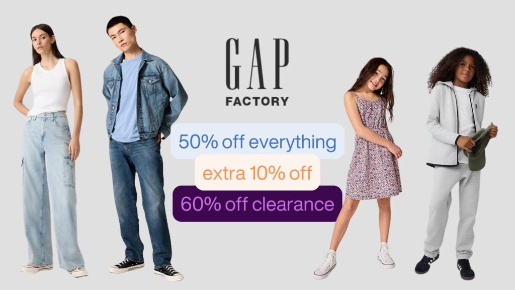 Shop the Gap Factory Sale for Friends & Family to get 50% off Everything, 60% off Clearance and Outerwear, plus an extra 10% off your purchase!