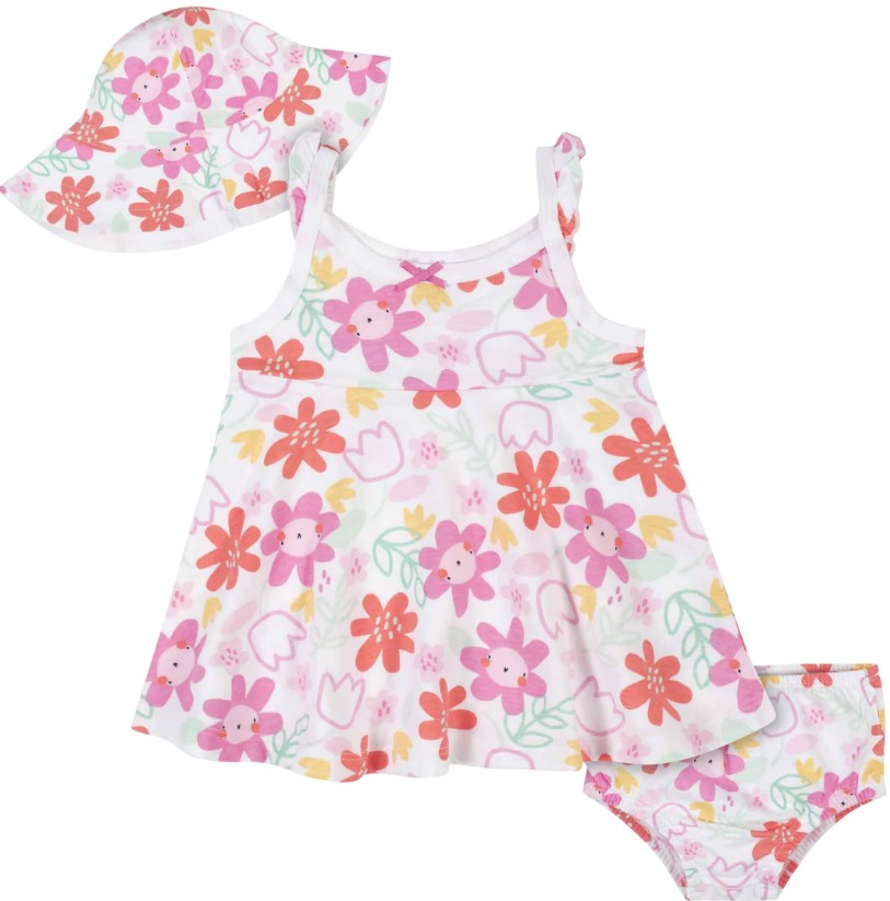 3-Piece Baby & Toddler Girls Garden Dress, Diaper Cover & Sun Hat Set – $8 (reg. $24)