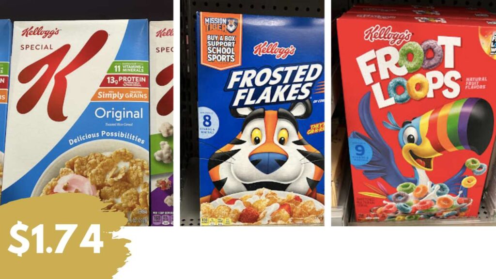 - Kellogg’s Cereal, 8.9-16 oz, $2.49