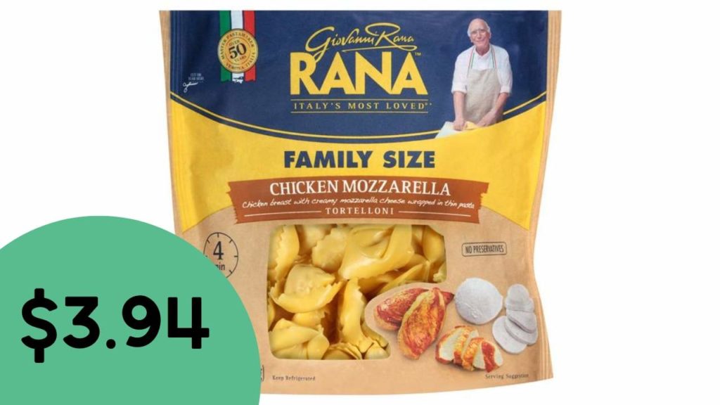 - Giovanni Rana Chicken Mozzarella Refrigerated Family Size Bag, 20 oz, $6.99 (thru 10/5)