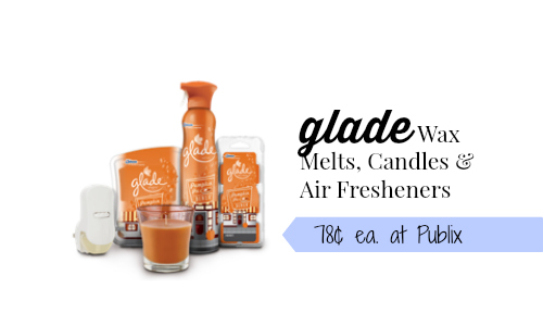 Check out these great Glade Coupons! This week at Publix, you can get select Glade items for 78¢ each after a whole bunch of coupons (all of which you can get online).