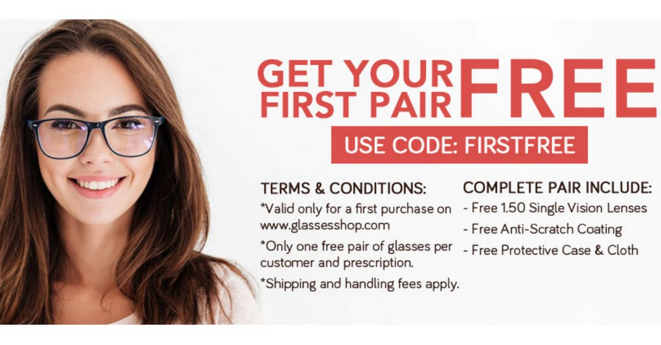 First time customers to GlassesShop can get their first pair of glasses FREE! You’ll only have to pay shipping.