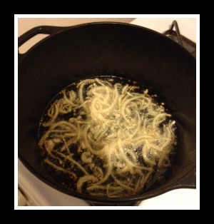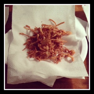 Fried onions make a green bean casserole what it is. I have a selection of gluten free flours, so I decided to try out some different combinations to see what worked best.