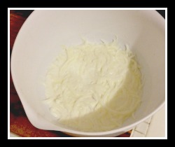 Once they are sliced, separate them by hand and then soak them in milk. You will just need enough milk to cover the onions. You can do this in batches to use less milk.