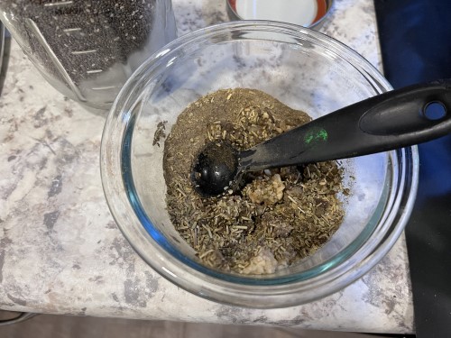 - Add spices and chia seeds and continue to use your fingers to combine all of it together.