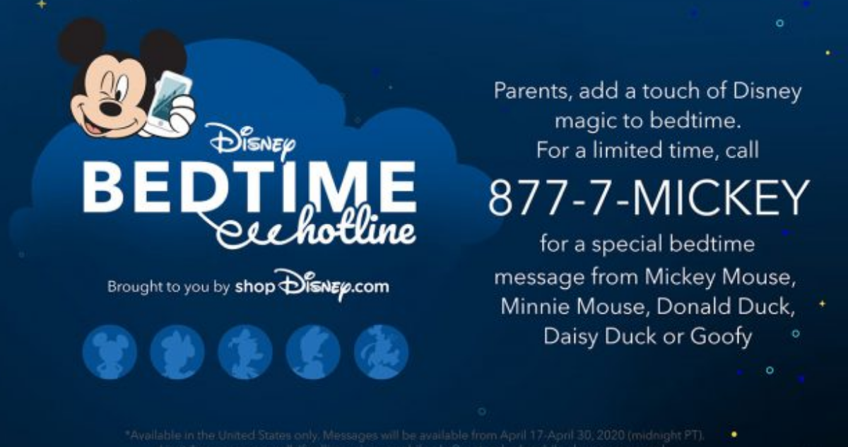 The Disney Bedtime hotline is currently available for free through tonight, 4/30.