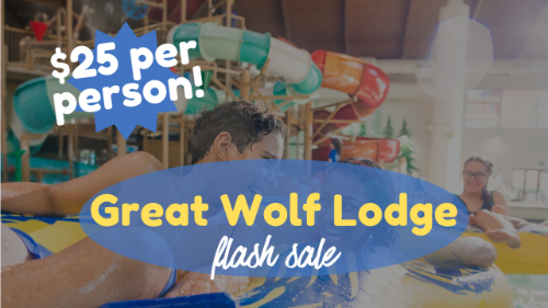 Looking to break up the winter doldrums? Hop over to the Great Wolf Lodge flash sale TOMORROW ONLY to score tickets at $25 a night per person!